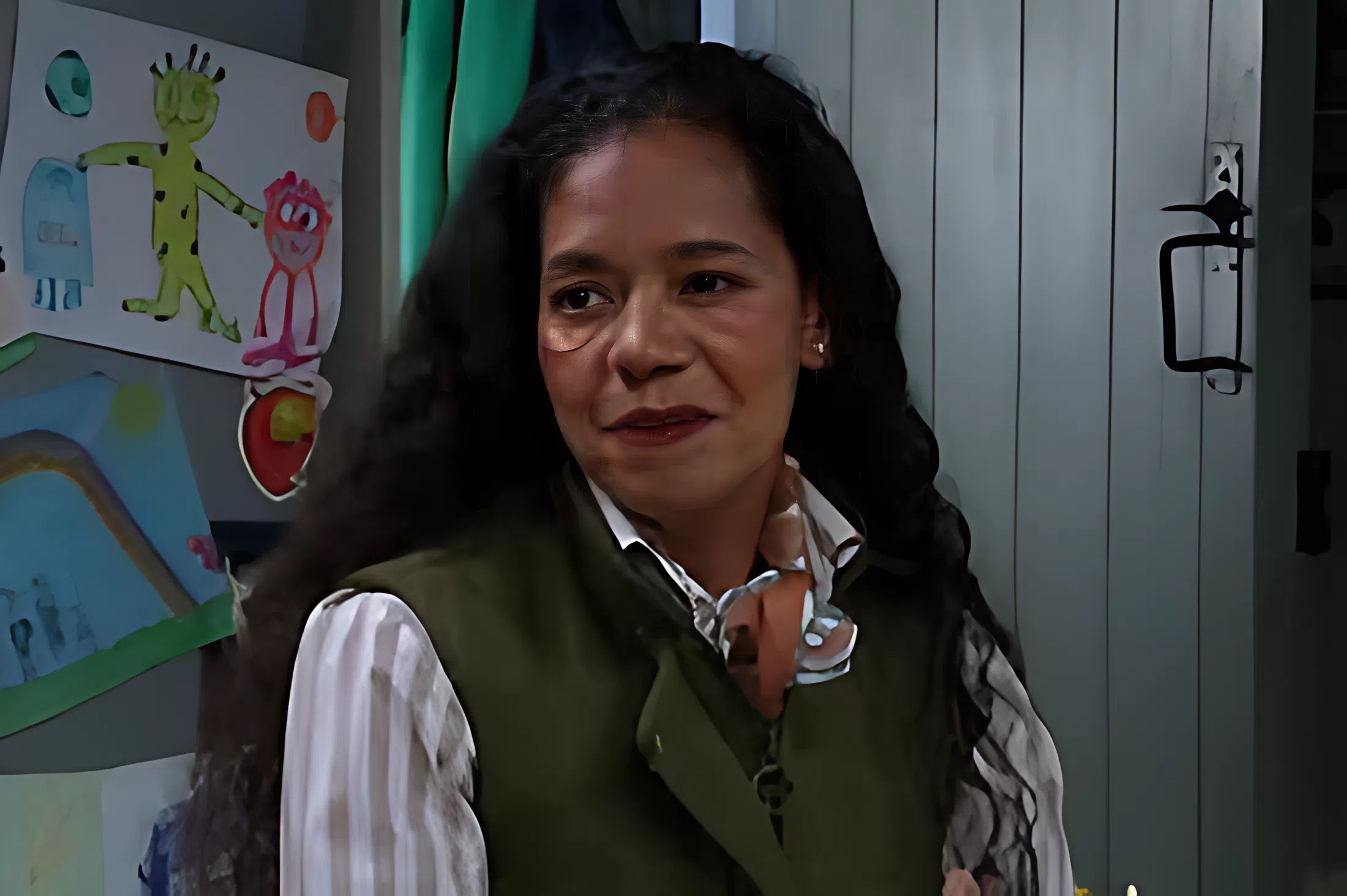 Villainous Celia, played with spine-chilling precision by Jaye Griffiths, has been running a dark criminal network under the cover of a quiet farm life. With her son Ray Walters as her enforcer, she’s groomed local teens like April Windsor and Dylan Penders, trapped Bear Wolf in domestic slavery, and left a trail of trauma throughout the village.