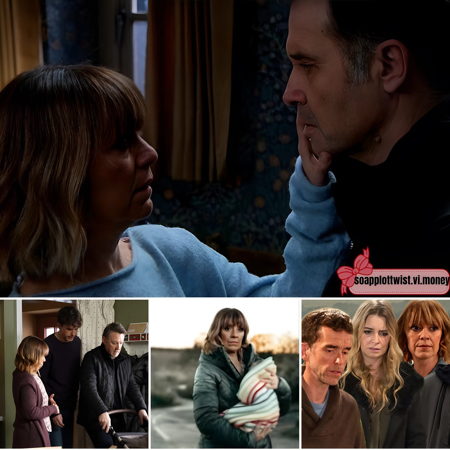 In this new video, Graham grabs Rhona’s face to prevent her from screaming the house down. She then touches his face and cannot believe she is looking at the man who was apparently murdered years ago.